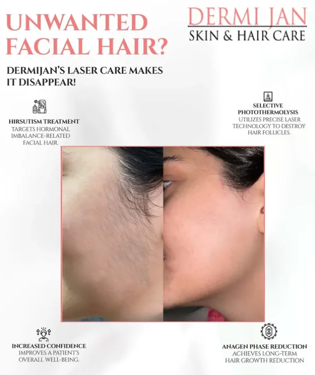 Laser Hair Removal in Chennai Unwanted facial hair making you feel less confident? 🤷‍♀️💫Dermijan’s advanced laser care targets the root cause, giving you long-term smooth and flawless skin. Step into confidence today!